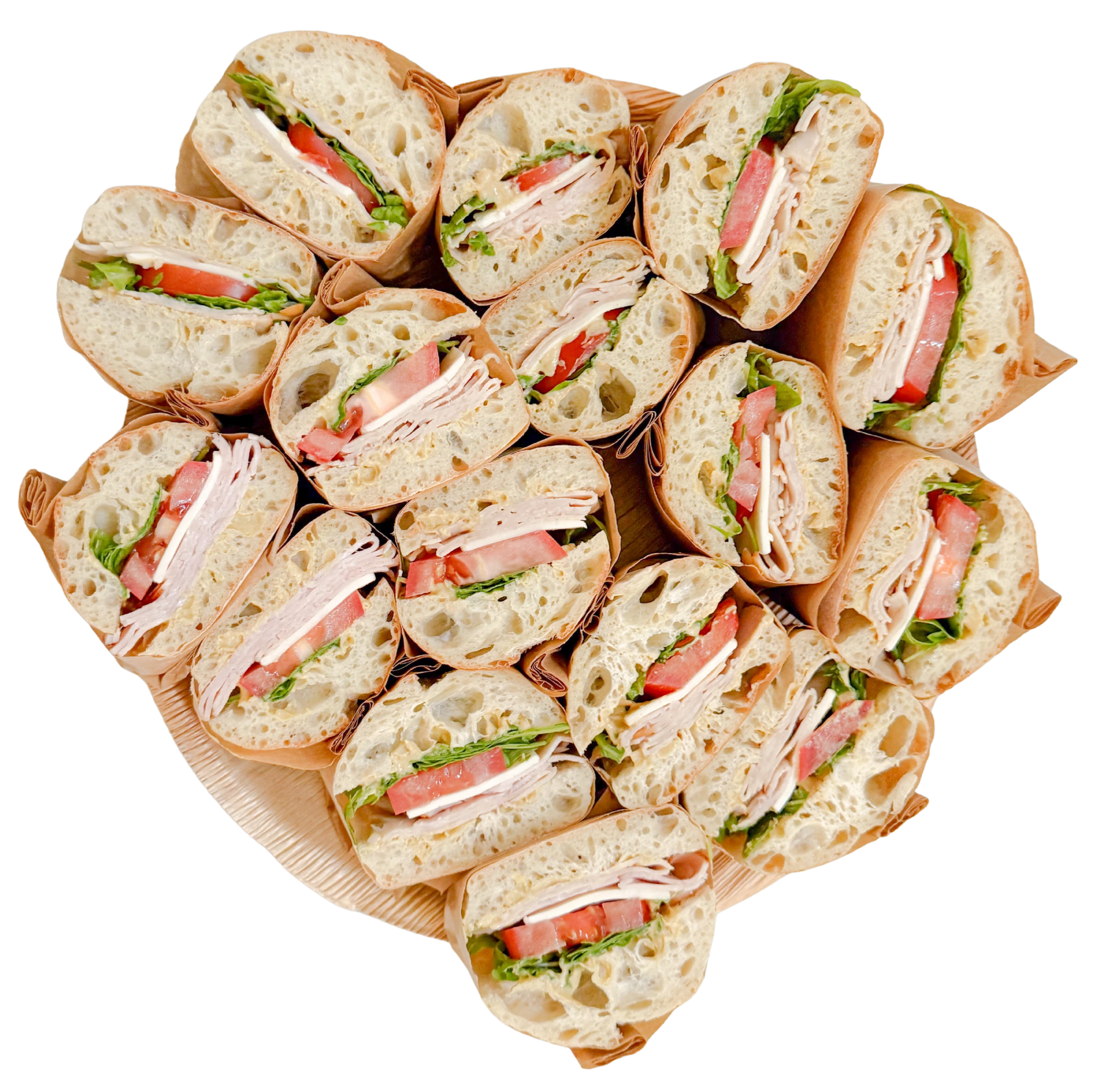 Serving sizes are based on average portions and may vary depending on appetites. Because sandwiches are bite-sized, we recommend adding complementary boards or platters for larger or hungrier groups.
