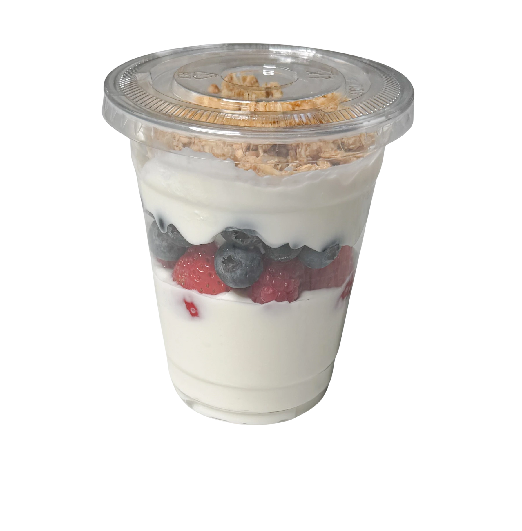 Fork and Flare’s Parfait Cups celebrate the art of wholesome indulgence. Each 12-ounce serving combines non-fat Greek yogurt (a source of protein and probiotics) with layers of fresh raspberries, strawberries, blueberries, and blackberries—berries known for their antioxidants and vibrant color. The parfait is finished with toasted oats and crunchy granola, creating the perfect balance of creamy, tart, and sweet textures.