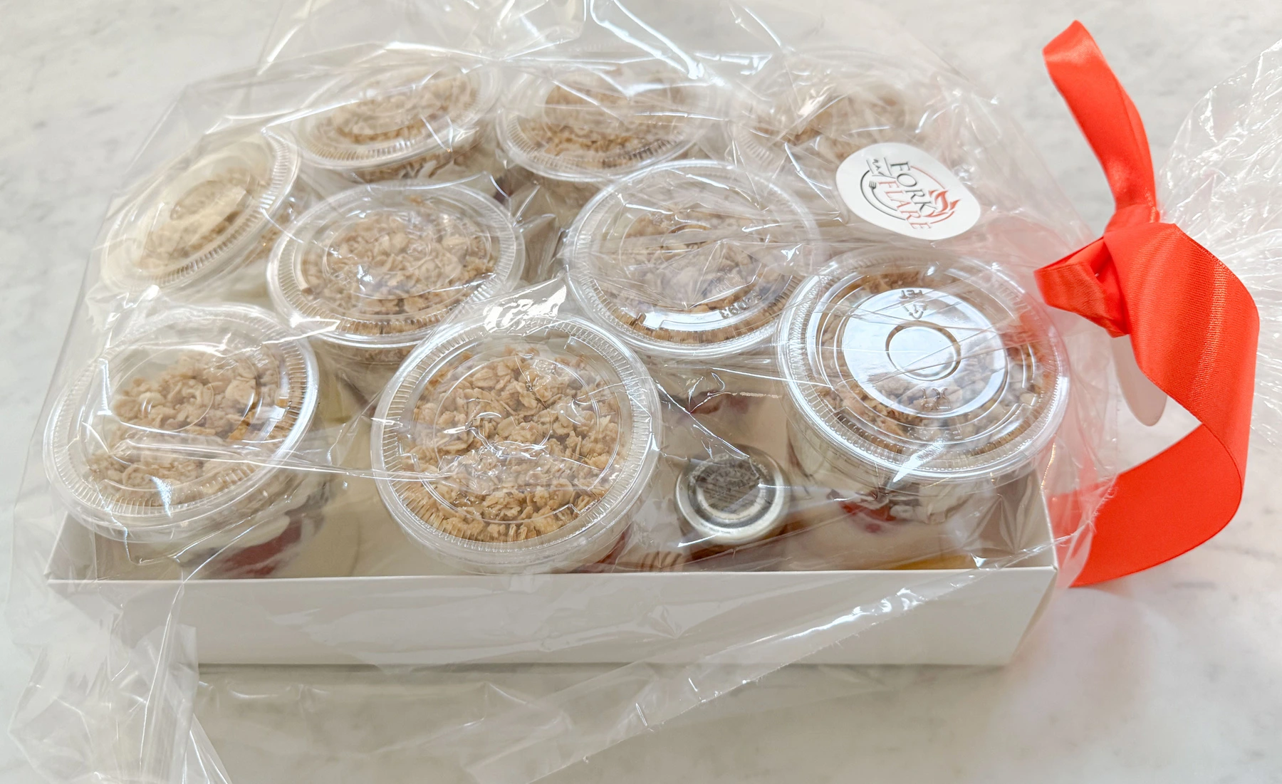 Made fresh in-house in Orange County, California, these parfait cups are ideal for corporate breakfasts, brunch spreads, and catering events across Irvine, Newport Beach, Laguna Niguel, Costa Mesa, and Mission Viejo. They’re sold by the dozen when ordered on their own or can be added individually to other Fork and Flare orders, such as charcuterie boards, crudités platters, or fruit grazing tables, for a complete, nutrient-rich presentation.